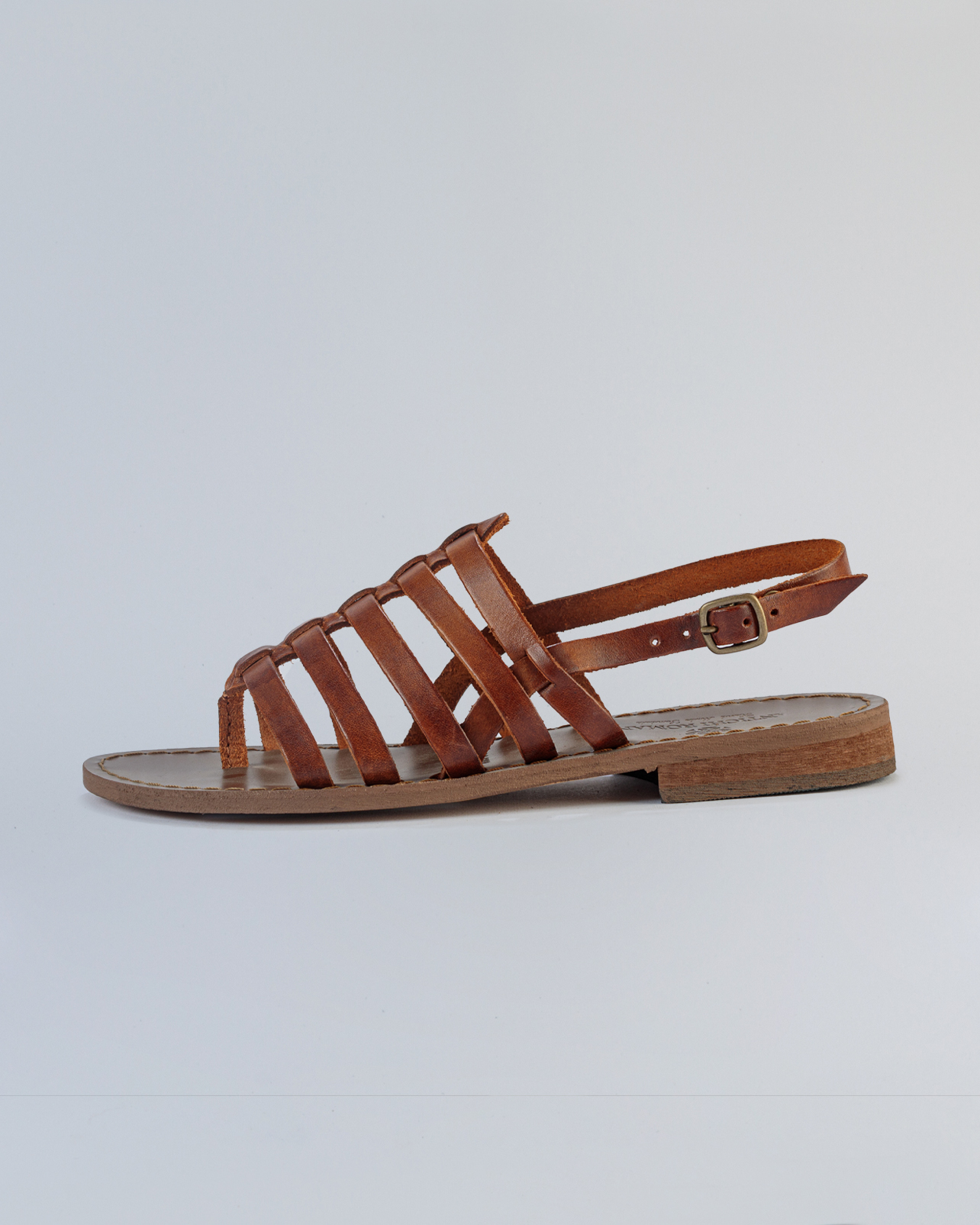 “Realizzato artigianalmente in morbida pelle naturale, questo sandalo unisce tradizione e comfort in un design senza tempo. Le sottili fasce intrecciate avvolgono il piede con eleganza, garantendo stabilità e traspirabilità anche nelle giornate più calde. La chiusura con cinturino e fibbia laterale permette una calzata regolabile e sicura.