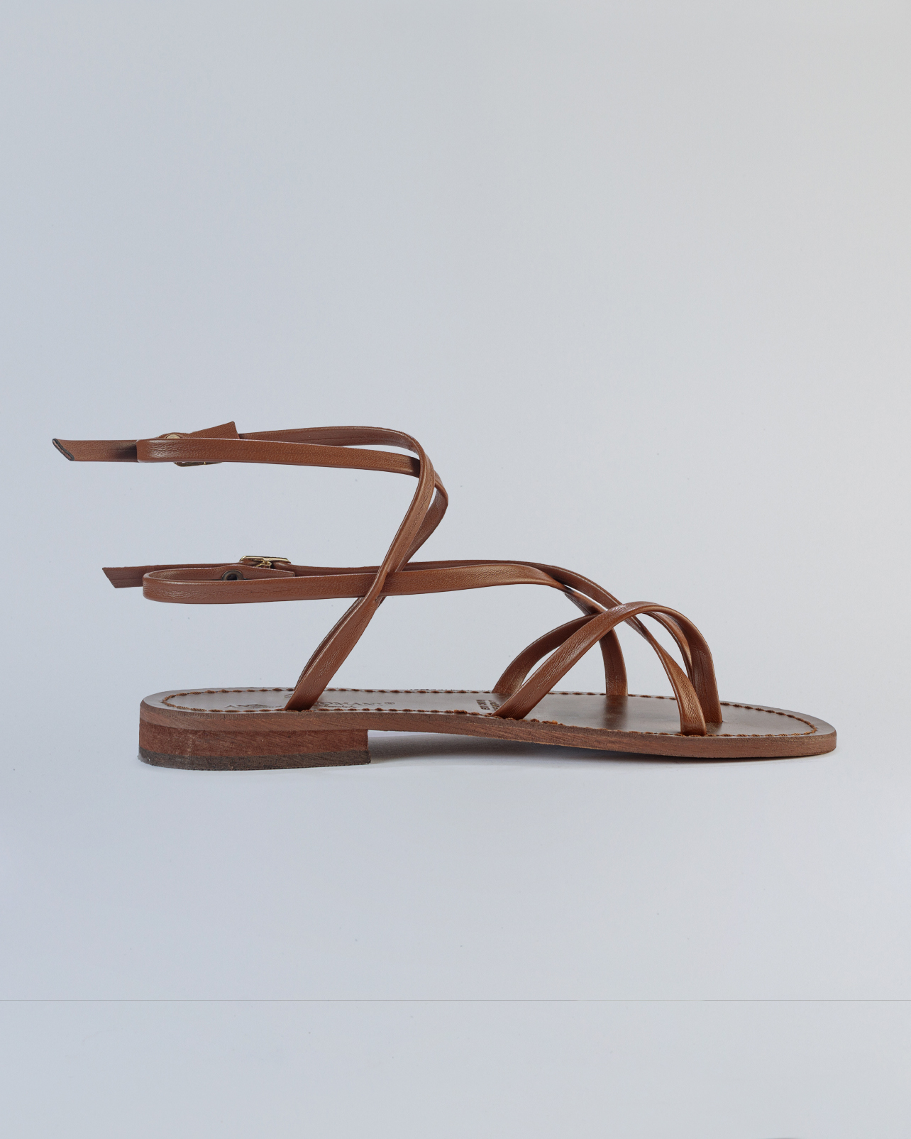 “Questo sandalo artigianale in pelle รจ un classico intramontabile, perfetto per la stagione estiva. Le sottili fasce in pelle liscia si incrociano elegantemente sul piede, creando un effetto raffinato e femminile. Il cinturino con fibbia laterale regolabile assicura una calzata comoda e stabile, mentre la suola in cuoio cucita a mano garantisce resistenza e durata nel tempo.